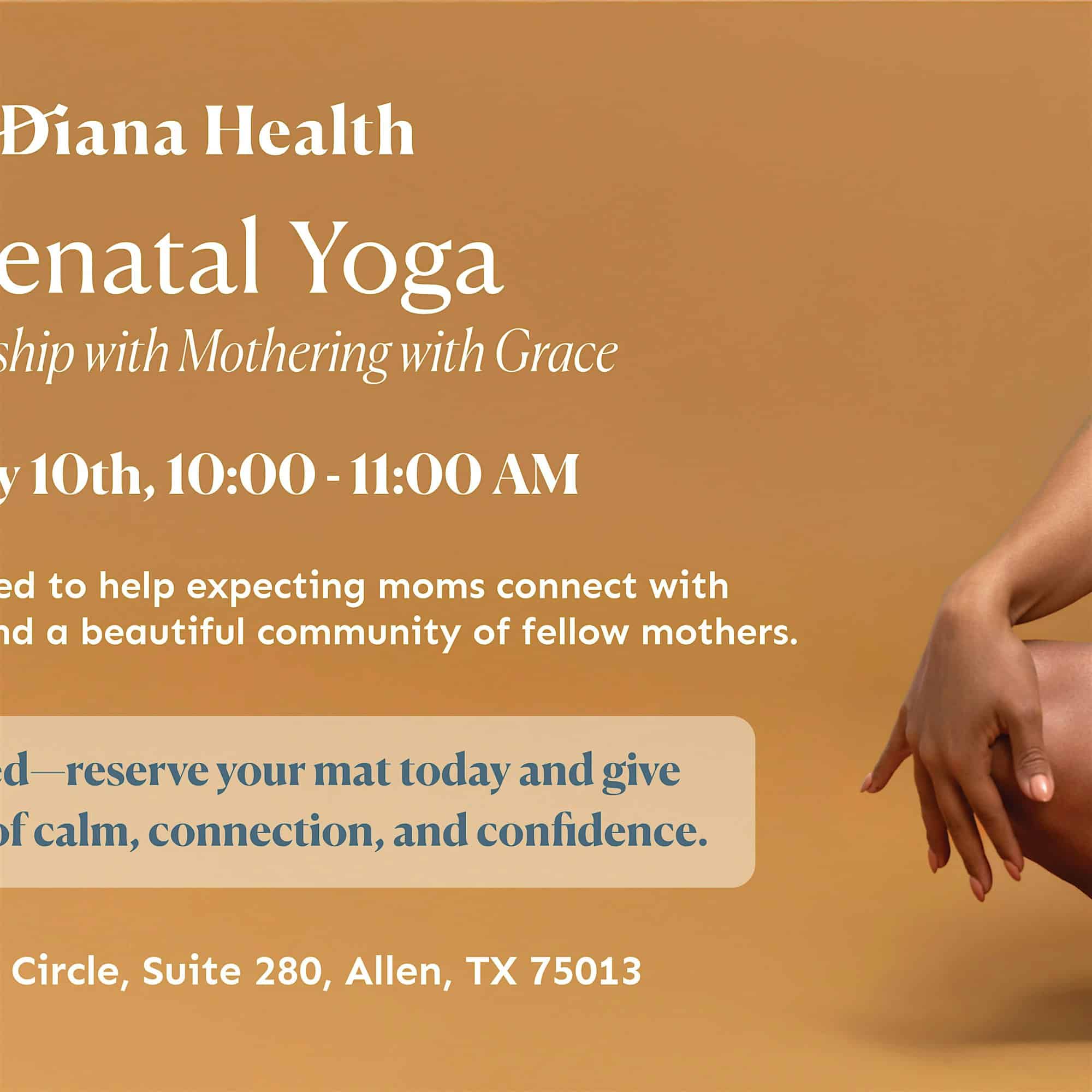 Prenatal Yoga January 10 @ 10:00 am - 11:00 am Diana Health Allen 1120 Raintree Circle, ##280, Allen, TX, United States